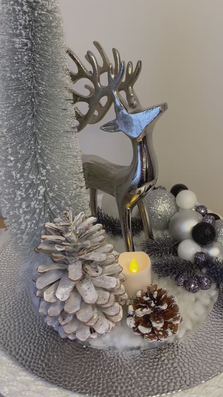 Bring style and sophistication to your decor with the beautiful "Au pays du cerf d'argent" centerpiece. It includes a silver-colored tray, a silver tree and an LED candle to illuminate your home. This ready-to-use decorative object is adorned with a silver-plated deer, making it a charming and luxurious addition to your decor.