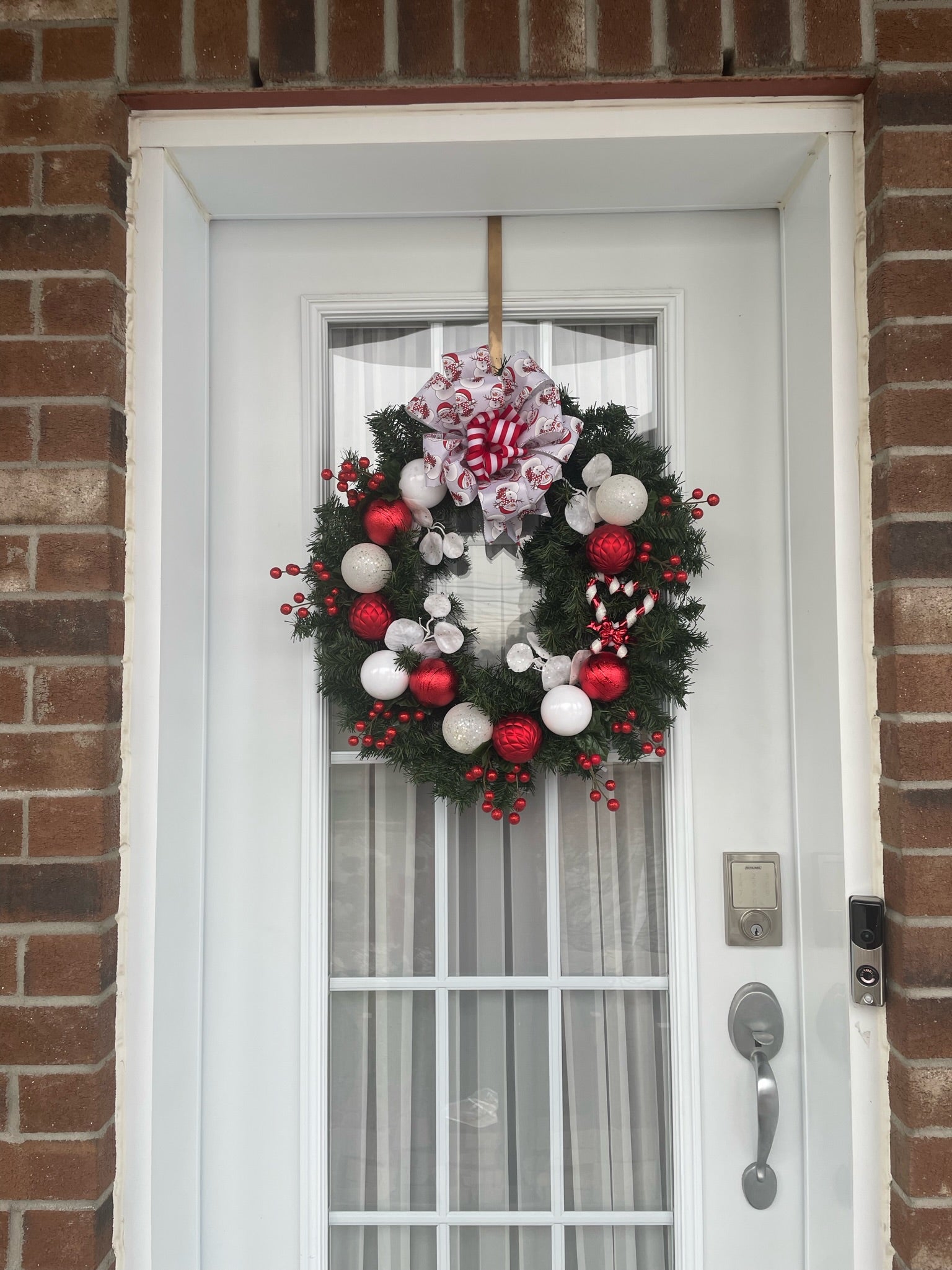 Couronne de NOËL 24 pouces fait a la main avec matériaux neufs sur couronne de sapin artificiel.