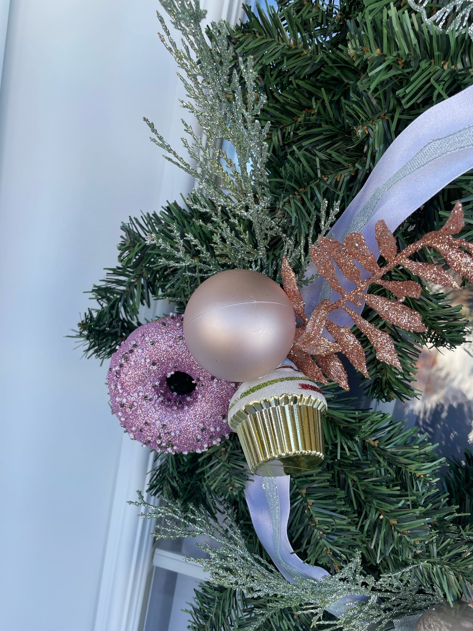 Offrez un goûter délicieux avec la couronne de Noël "La Sucré"! Elle contient des beignes, des muffins et des ornements décoratifs pour ajouter une touche de fête à votre table. Avec un équilibre parfait entre la douceur et le croquant des ingrédients, cette couronne est un moyen parfait pour célébrer Noël.