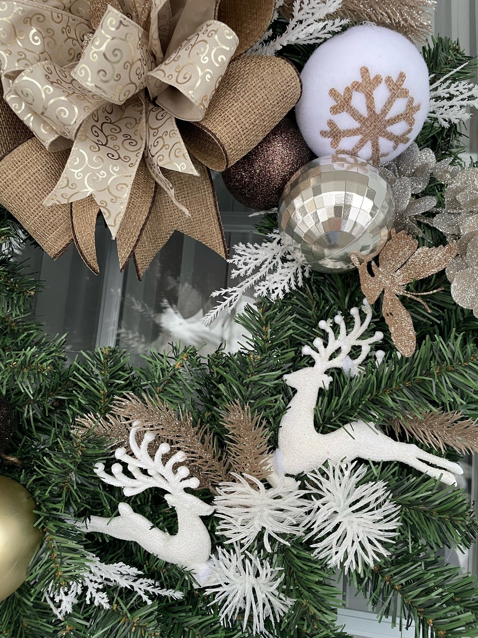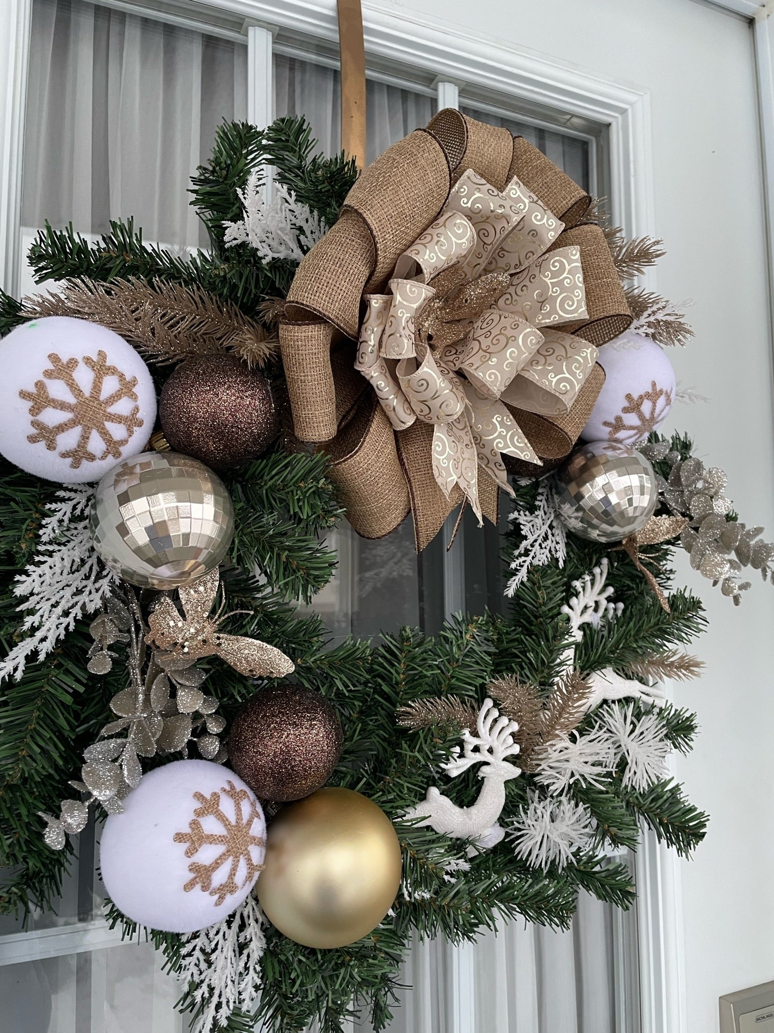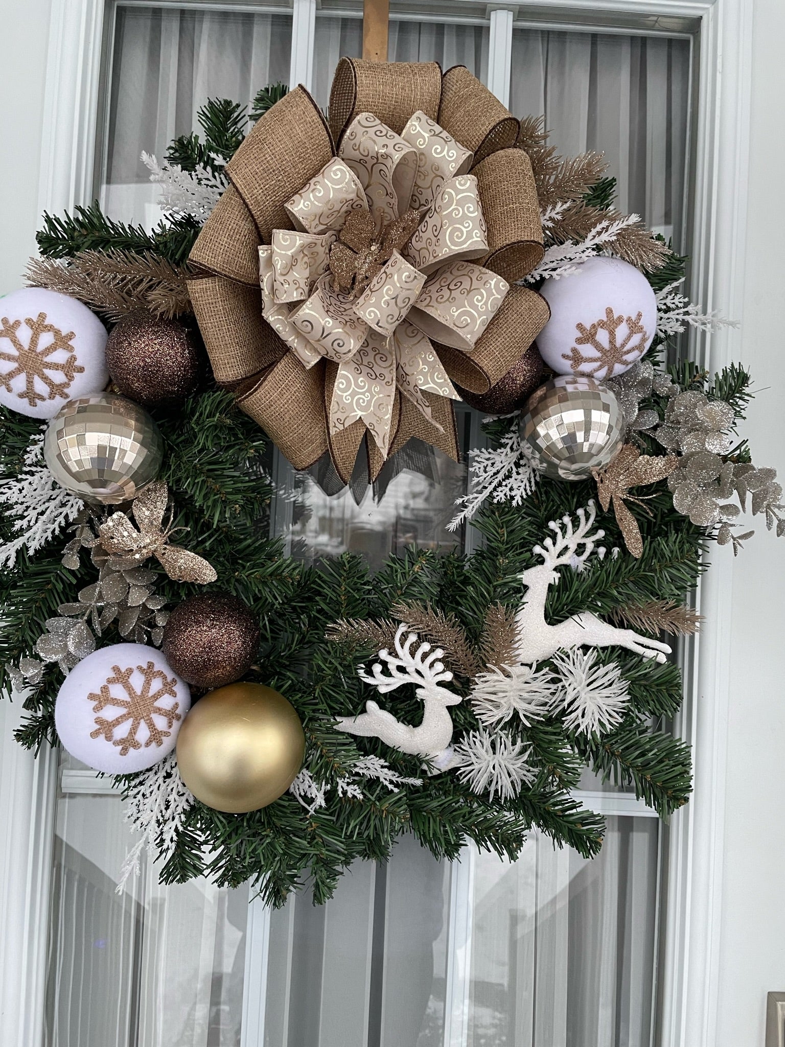 Couronne de Noël 24 pouces fait a la main avec matériaux neufs sur couronne de sapin artificiel et ses ornements