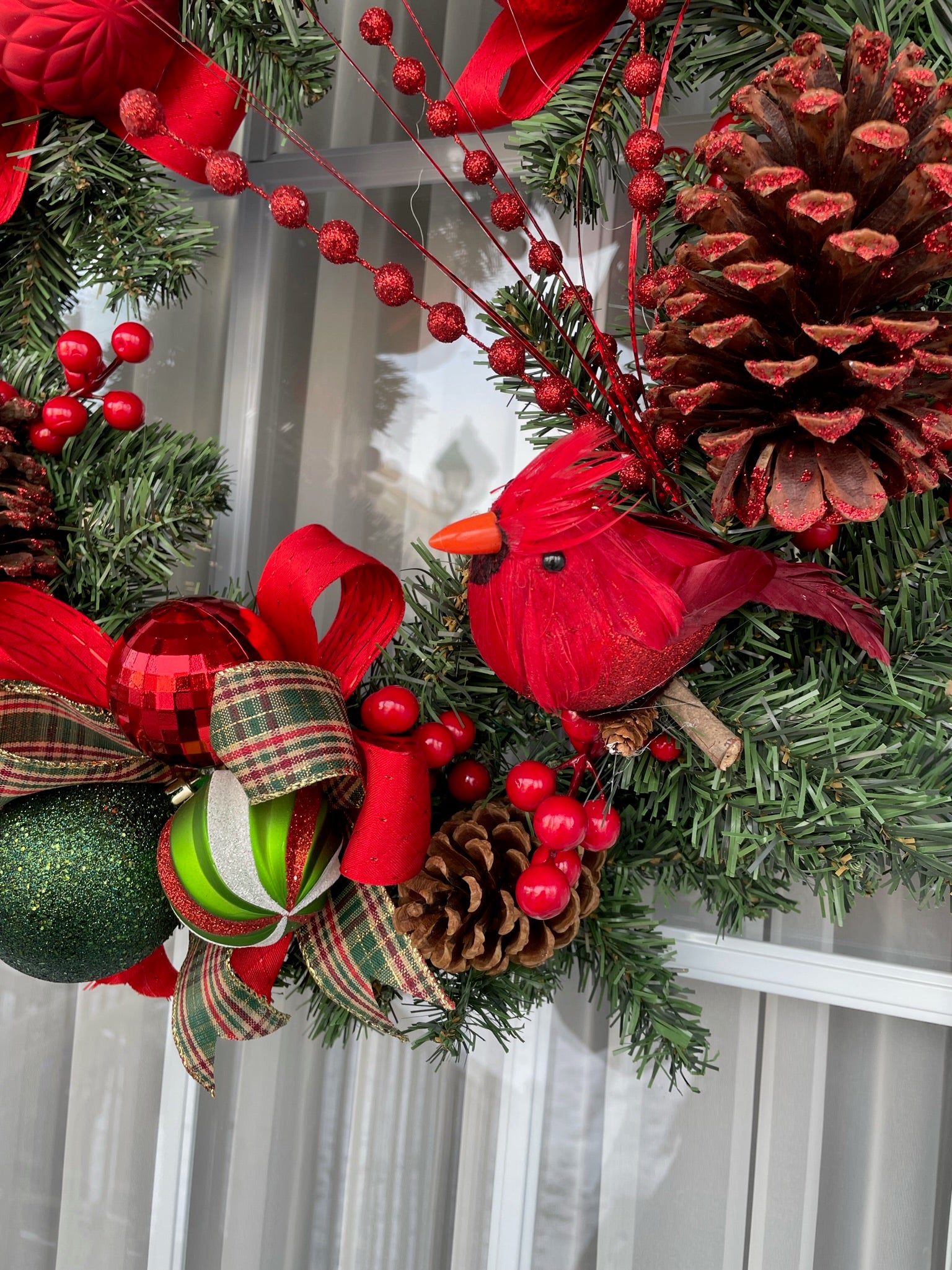 Couronne Noël " Le Cardinal dans la forêt de Noël "