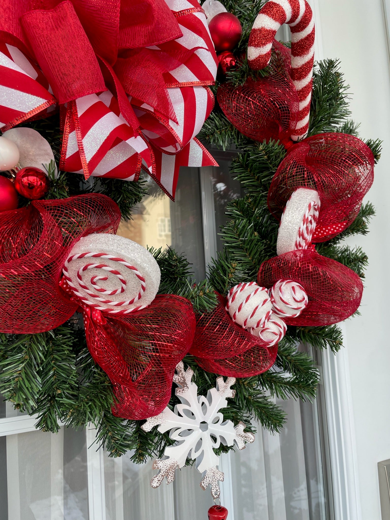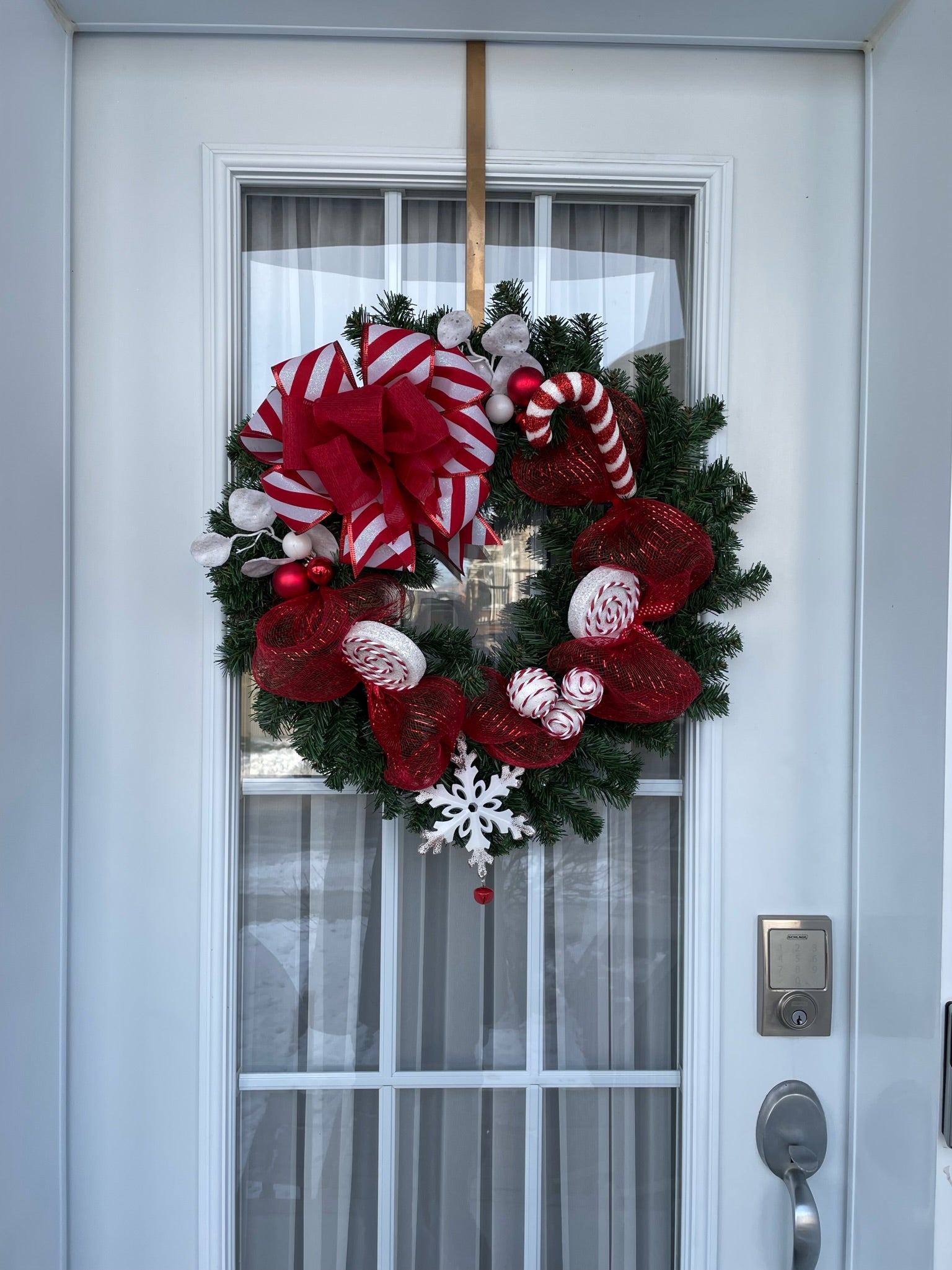 Couronne de NOËL 24 pouces fait a la main avec matériaux neufs sur couronne de sapin artificiel et ses ornements
