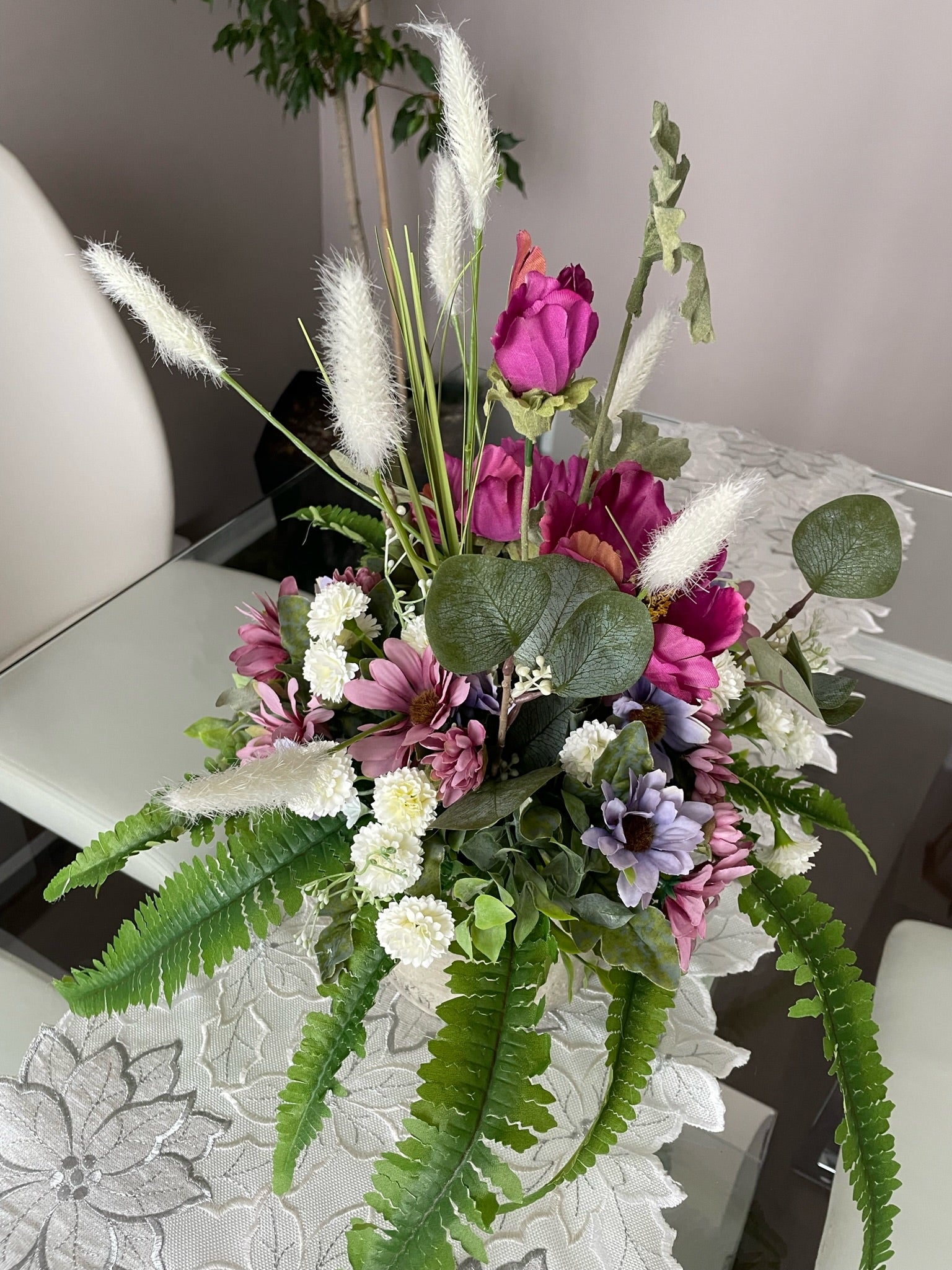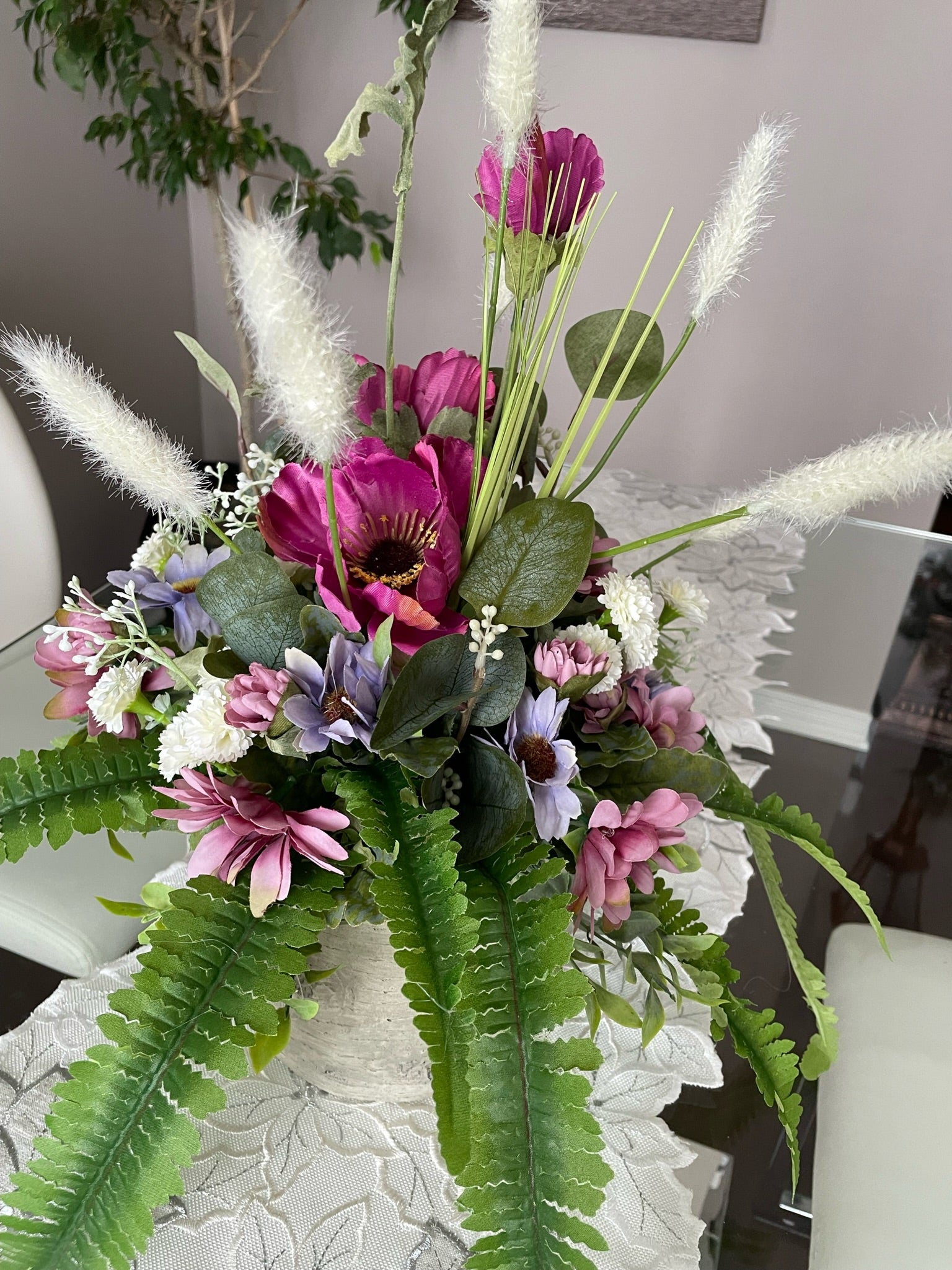 Cette superbe arrangement de fleurs artificiel dans un vase en céramique est parfait pour apporté un peu soleil dans votre maison ou pour donné en cadeau a une personne qui vous est cher !