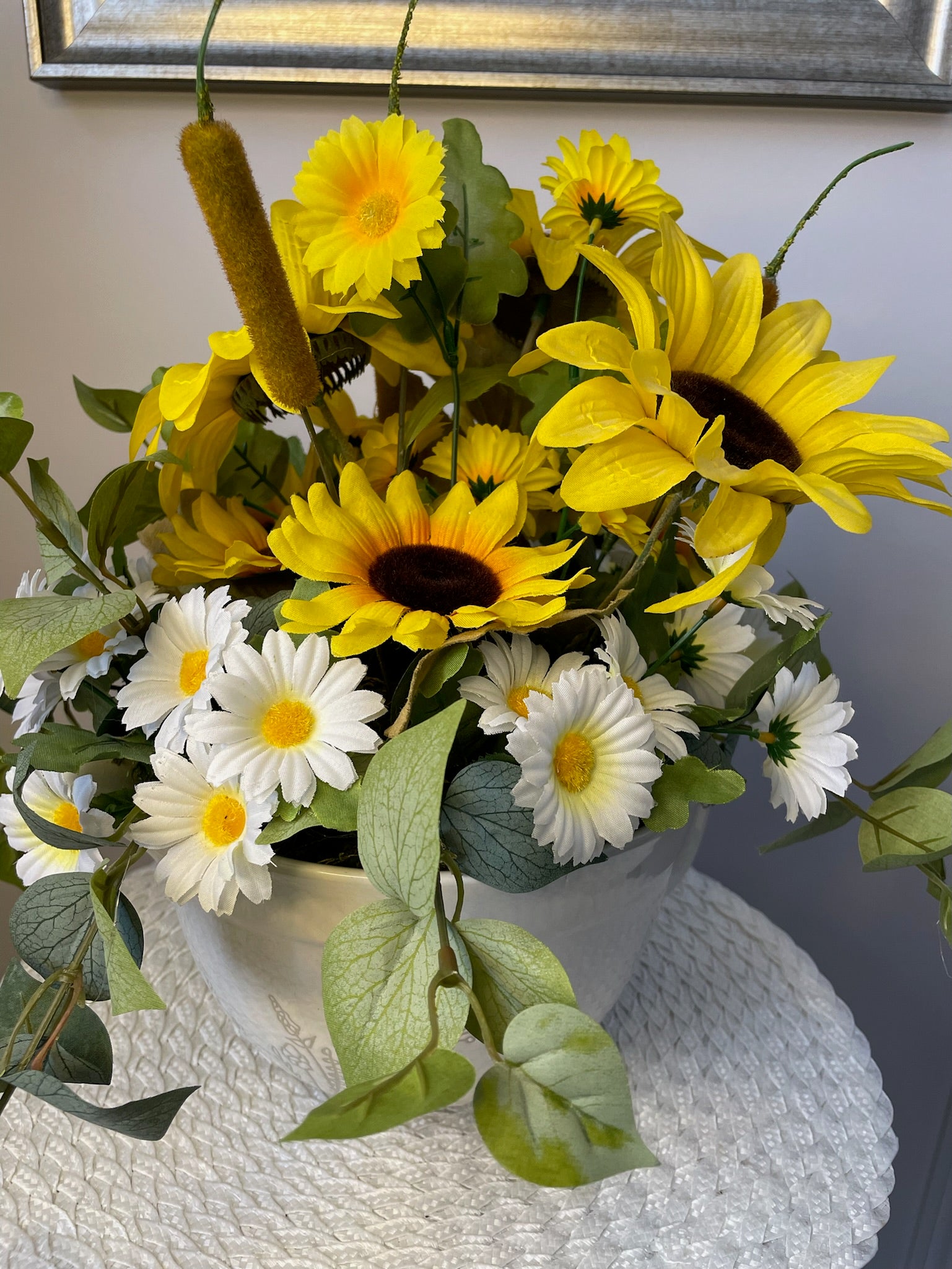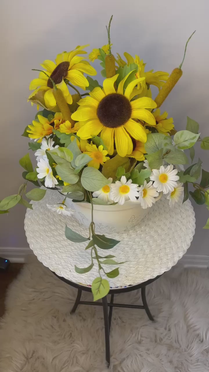 Dimension du vase = 6" Hauteur ( 16" avec fleurs ) x 12" Largeur